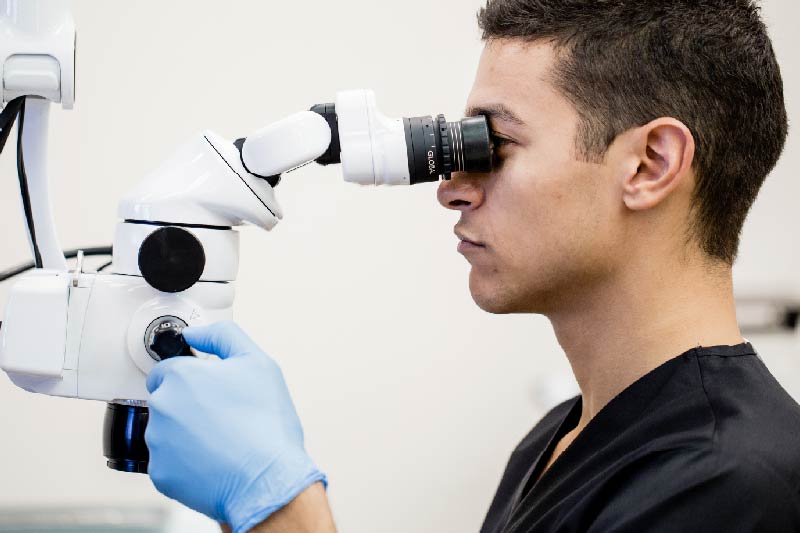 マイクロスコープで拡大した映像にて治療内容をご確認いただけます。