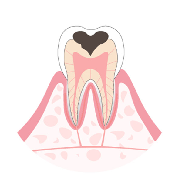 虫歯がエナメル質の内側の象牙質に達したものです。 象牙質はエナメル質より軟らかい組織なので、虫歯の進み方が速くなります。